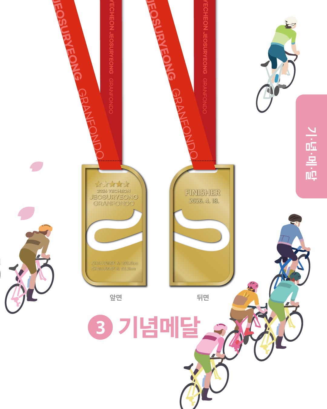 주최 예천시 체육회 주관 XCWORKS 행사명 2026 예천 저수령그란폰도 일시 / 장소 2026. 4. 18 (SAT), 08:00 ~ 15:00 / 예천 한천체육공원 및 예천군일원 코 스 CHALLENGE A 103.6km